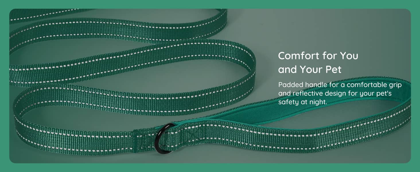 • Reflective piping and double-sided reflective leash for better visibility at night.
